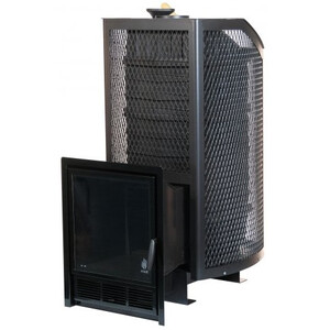 Печь банная чугунная Амур-ПРО с закрытой каменкой. Панорамная дверца (сетка)